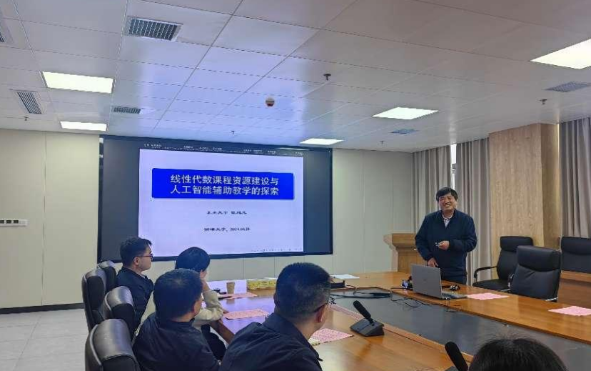 为加快推进一流学科课程建设工作,深切提高教师教育教学水平,10月28日,91自拍 于数学楼A418顺利举办第19期教学高端论坛大会,本次论坛的主题为线性代数课程的资源建设与人工智能辅助教学的探索。论坛特邀东南大学陈建龙教授为91自拍 老师分享线性代数建课经验,35名数学院教师代表参与论坛讨论,刘红良副院长、张娟副院长出席。论坛由杨银院长主持。