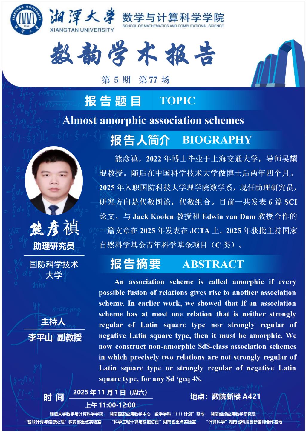 数韵学术报告-Almost amorphic association schemes