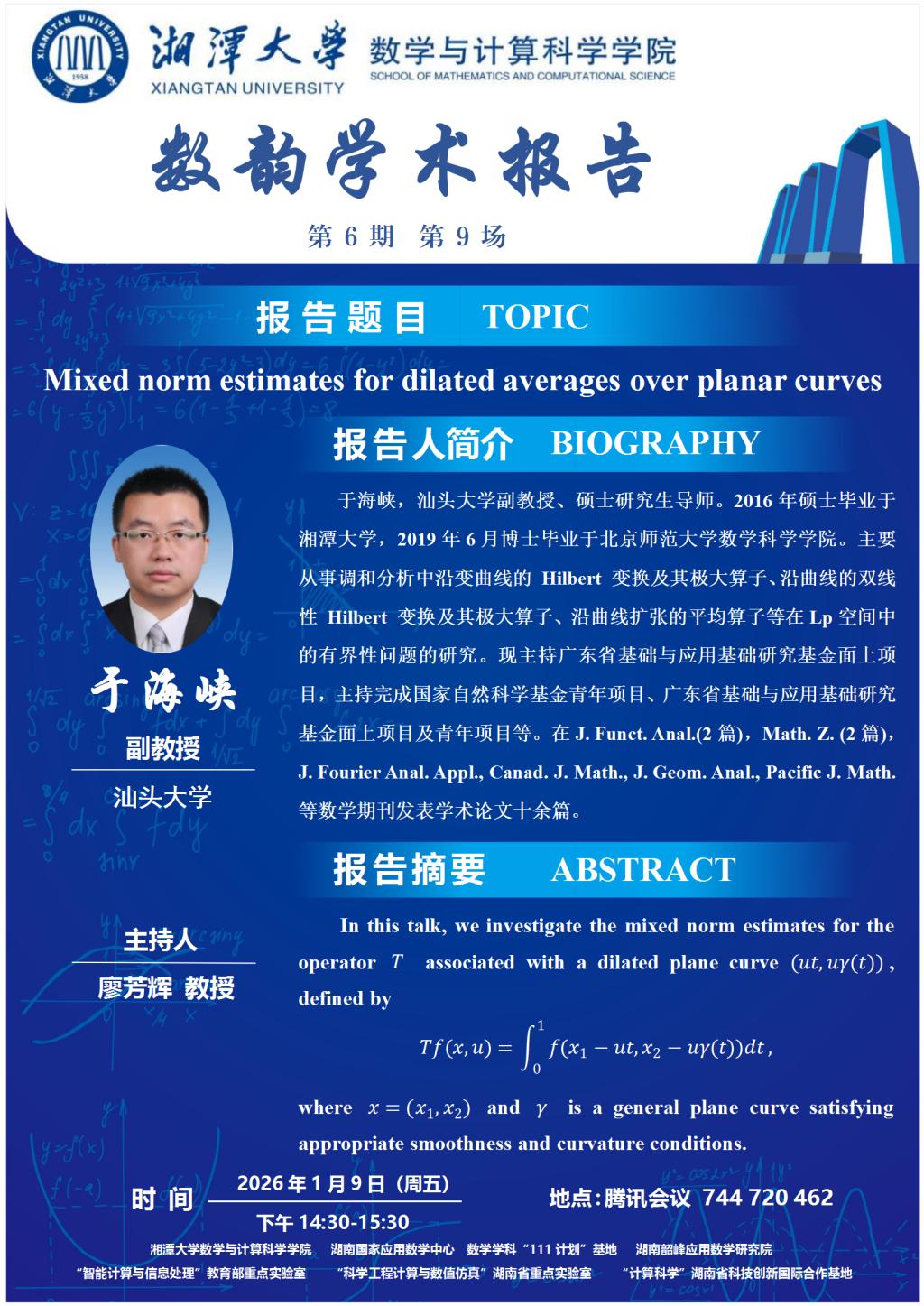 数韵学术报告-于海峡-Mixed norm estimates for dilated averages over planar curves