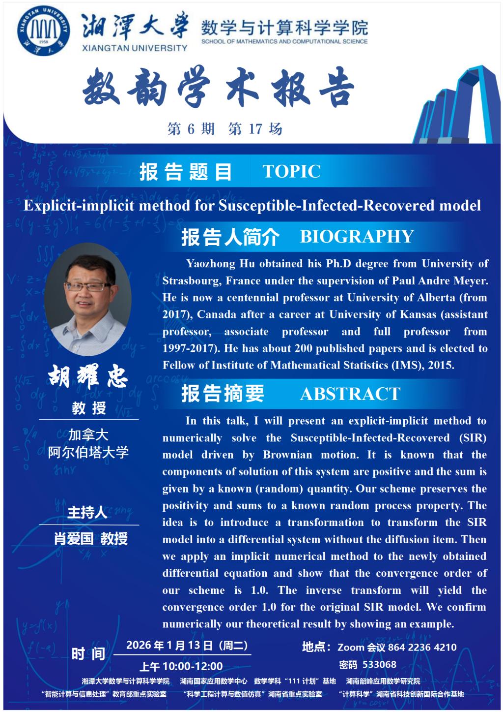 数韵学术报告-胡耀忠-Explicit-implicit method for Susceptible-Infected-Recovered model