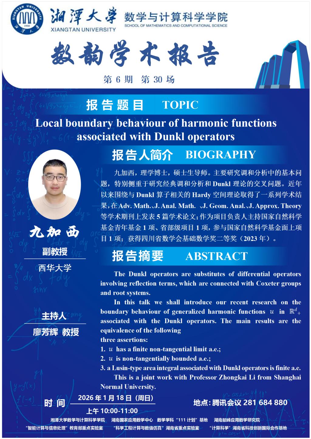 数韵学术报告-九加西-Local boundary behaviour of harmonic functions associated with Dunkl operators