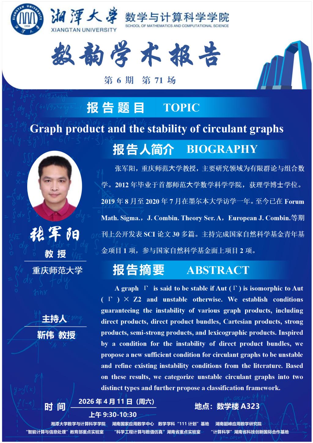 数韵学术报告—张军阳—Graph product and the stability of circulant graphs
